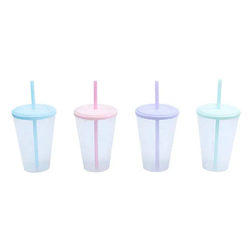 Vaso Plástico Duro Con Tapa Y Sorbete X12 Unidades Por Mayor -